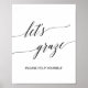 Ce poster de table de nourriture en calligraphie noire élégante Let's Graze est parfait pour un mariage simple. Le design neutre présente un poster minimaliste orné d'une typographie romantique et fantaisiste.