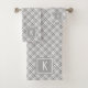Elegant Tartan Grey White Monogrammed Bath Towel Set