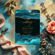 This sophisticated teal/turquoise and gold wedding invitation showcases a luxurious agate-inspired design with shimmering gold accents and elegant typography. The reverse side includes a convenient QR code for guests to access additional wedding details. Perfect for modern and stylish weddings.
