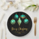 Elegant Teal and Gold Ornament Christmas Paper Plate