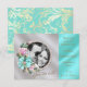 Elegant Teal and Gold Silver Photo Save the Date with Satin flowers