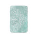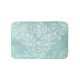 White damask filigree and floral pattern on softly shaded pastel teal background.