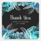 Elegant Teal Blue and Silver Flower Birthday Party Square Sticker