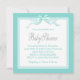 Elegant teal blue and silver baby shower invitations. This beautiful teal blue baby shower invitation works well for a baby boy or baby girl, gender neutral baby shower invitation. White wicker bassinet with canopy teal blue baby shower invitation. Add your details to the front and/or back by simply adding your event details, font style, font size & colour, and wording.