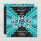 Elegant Teal Blue Lace Black Diamond Birthday Invitation