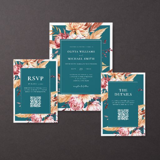 Elegant Teal Boho Chic Floral Wedding Acrylic Invitations