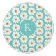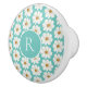 Elegant Teal Daisy Pattern Monogram Ceramic Knob