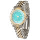 This is a classy watch with a bright faux foil teal background at the centre. A semi transparent border frame holds the black numbers, and your three letter monogram is also in black at the bottom. Elegant, and personalized, too!