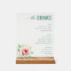 Elegant Teal Floral Beverage Menu Acrylic Sign