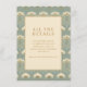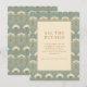 This elegant wedding enclosure card features a central beige panel framed by a delicate gold border, surrounded by a repeating floral pattern on a soft teal background. The design showcases large, stylized white flowers with green foliage arranged in a grid-like repeat, creating a balanced and symmetrical composition. The typography is formal yet inviting, with a bold serif font for the title "ALL THE DETAILS" and a lighter weight for additional information, guiding guests to visit the wedding website. The overall mood is sophisticated and warm, making it perfect for sharing important details at your special event.
