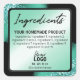 Elegant Teal Glitter And Ink Ingredient Labels. PLEASE NOTE: These labels will not reflect any light as no glitter or metallic ink will be used in the making of them.
