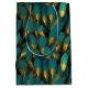 Elegant Teal Gold Feathers Medium Gift Bag