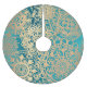 This Christmas or Holiday tree skirt features a beautiful teal green and gold floral mandala pattern design. The perfect Holiday accessory for your home.
