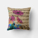 Elegant Teal Peacock Purple Floral Sheet Music Throw Pillow