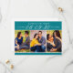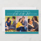 These stylish wedding save the date announcement cards include three 2 x 3" engagement photos with the date featured in elegant script writing. Personalize the card template wording on the front and back of the card for your big day. The teal green background and text colour can be customized to coordinate with your wedding colour scheme.