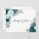 This beautiful postcard is an elegant and sophisticated way to let your guests know if you are in the unfortunate position of having to alter or postpone your wedding plans. It features a hand painted watercolor floral design with roses and foliage in shades of teal, turquoise, aqua, and cyan. The front reads "change of plans" in elegant script calligraphy, and the back has space for a custom note where you can explain the situation to your guests.