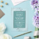 Invite your loved ones to share in your joy on your wedding day with these gorgeous acrylic invitations. The stylish teal & silver design features your names prominently displayed in block letters while the introduction and other notes feature fancy script calligraphy with swashes on the ends of the letters. The text is displayed on a light purple or lavender coloured background inside of a sliver-grey frame. The outside border of the invite is transparent acrylic with ornate silver faux foil decorations in the corners. Elegant, classy, sophisticated and beautiful, these wedding invitations are sure to leave a lasting impression.