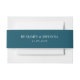 Elegant teal wedding invitation belly band personalized with the bride and groom's names and the wedding date in a classic serif font.