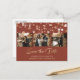 Elegant personalized terracotta and gold wedding photo save the date postcards with a modern script font. Our wedding save the date features a photo collage of 3 images against a terracotta background adorned with string lights. Easily personalize this photo save the date postcard with your images and wedding details including a wedding website, if desired. For custom requests, please send us a message.