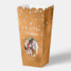 Make your wedding or birthday celebration extra special with these custom popcorn favour boxes. Featuring a stunning terracotta foil background adorned with faux glittering diamonds, these favour boxes add a touch of elegance and sparkle to any event. Personalize with the couple's last name, special date, and a cherished photo on the front. On the back, guests can easily find a QR code and text template directing them to upload their wedding pictures and videos to a dedicated website. These boxes are perfect for wedding snacks, birthday treats, and any occasion that deserves a little extra glam.