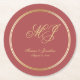 Elegant Terracotta Gold Monogram Script Wedding Round Paper Coaster