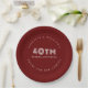 Elegant Text Burgundy 40th Wedding Anniversary Paper Plate