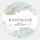 Elegant Textured Blue Gold Handmade With Love Classic Round Sticker