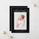 Simple and minimalistic birth announcement card featuring typography text that says "thank you" in calligraphy style. You can add a photo on the front and back. The background is black.