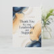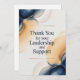 Featuring the heartfelt message “Thank you for your leadership and support,” this minimalist design combines clean modern typography with a calm neutral watercolor background in navy, gray, or beige tones.