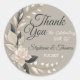 Add a personal and elegant touch to your wedding favours with these stunning floral wedding thank you stickers. Featuring delicate cream and beige flowers with lush greenery, this sophisticated design is perfect for celebrating your special day. Customize with the couple's names and wedding date to create a memorable keepsake for your guests. Ideal for sealing invitations, wedding favours, or thank you cards, these stickers are a timeless and beautiful way to show appreciation to your guests.