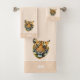 Elegant beautiful tiger animal face on champagne beige Bath Towl Set. Text can be personalized.