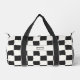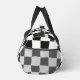 Elegant and timeless design for your duffle bag. Black and white checkered pattern, checkerboard, with space for your name or text on the front and side.