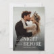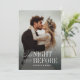 Elegant typography design with timeless serif font and classic calligraphy above couple's photo, additional information on the back, simple and romantic. Great the night before rehearsal dinner invitation for modern classic wedding, simple traditional wedding and formal vintage wedding.