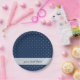 Elegant white polka dots pattern on a navy blue background. Simply press the "customize" button to personalize the product.
