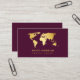 Elegant Travel Agent World Map Burgundy And Gold Business Card
