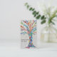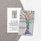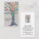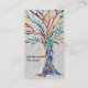 This unique business card is decorated with a print of a mosaic tree made of tiny pieces of brightly colored glass.