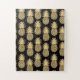 Elegant Tropical Black and Gold Pineapple Pattern Jigsaw Puzzle