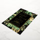 This modern tropical bridal brunch invitation features green and gold palm, philodendron, and fern leaves on a black background. An elegant gold foil frame highlights the gold foil text. Gold foil splatters accentuate this exotic botanical design and brings a bit of sophisticated whimsy to the invitation. This island oasis invite is perfect for any elegant outdoor, beach or tropical themed bridal shower brunch.