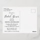 This elegant and modern tropical gold foil "Bridal Shower" postcard is an easy way of inviting friends and family to celebrate your upcoming wedding. "Bridal Shower", the bride's name, date, and location are featured on the front in the foil colour of your choice. The text is highlighted by a foiled frame. Tropical leaves, foliage and ferns peak out from behind the frame on a black background. Gold foil splatters add a bit of sophisticated whimsy to the design. The back of the postcard has the brunch details in black.