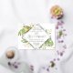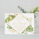 This elegant tropical themed wedding reception invitation features exotic foliage with gold accents. A modern geometric gold foil frame highlights the gold foil text. Gold foil splatters accentuate the botanical design and brings a bit of sophisticated whimsy to the invitation. This is the perfect wedding announcement and reception invitation for any tropical themed wedding.