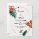 The design features a beautiful and vibrant tropical floral design that exudes elegance and sophistication. The lush greenery and vibrant flowers are a perfect representation of the beauty and charm of a tropical wedding. The elegant typography and sleek layout complement the tropical floral design, creating a cohesive and visually appealing design that will impress your guests and set the tone for your wedding day. This design is fully customizable, allowing you to personalize it to your exact specifications. You can choose the colours, fonts, and wording to match your wedding theme and style.