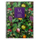 Elegant tropical green leaves and tropical fruits black pattern monogram Notebook. Modern,beautiful trendy pattern that will brighten any work space.