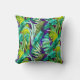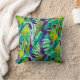 Elegant tropical green leaves purple pattern throw pillow