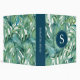 This elegant binder features watercolor monstera palm leaves with you monogram and name in white over a navy blue background. Art and design by Victoria Grigaliunas. To see matching modern beach back to school, office supplies and guest information vacation rental biners like this visit www.zazzle.com/dotellabelle