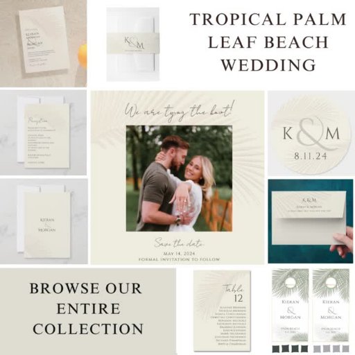 Announce your engagement and send a save the date with this unique tropical beach square card. The minimal tropical palm leaf design is easy to personalize.The vintage palm leaf combined with a beautiful font pairing, creates a unique and sophisticated look that is perfect for your special day. Add your square photo and customize the text. Be sure to check out other products in our coordinating wedding suite.