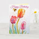 Elegant Tulip and Bee Watercolour Birthday Card