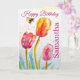 Elegant Tulip and Bee Watercolour Birthday Card, with a fully customizable name. Let this beautiful bird brighten your day! Designed from one of my original watercolors. Sure to put a smile on the receivers face.
