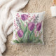 Elegant Tulip Flowers Pattern,Purple Stripes Throw Pillow