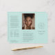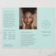 Elegant trifold brochure featuring a modern design with an abstract flower over a turquoise / aqua background. If you prefer, you may replace the abstract flower image with your own logo in the template form. The template includes markers for the folds and you may remove them in the design editing tool. This trifold brochure is great for an aesthetician, hair stylist, makeup artist, beauty salon or nail salon.