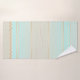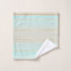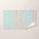 A beautiful striped bathroom towel set in soft turquoise and sandy beach colours. Beautiful for a beach house or coastal living space as well as a pastel coloured design bathroom.